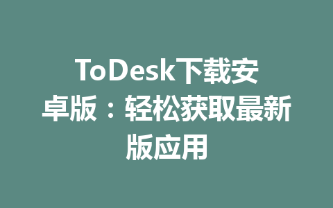 ToDesk提供了一种快速、方便的方式来访问和控制你的电脑,而在今天的移动世界中,下载其安卓版应用变得尤为重要。在这篇文章中,我们将详细解析如何为你的Android设备轻松获取ToDesk最新版应用,确保你在任何地点都能顺畅管理远程任务。
